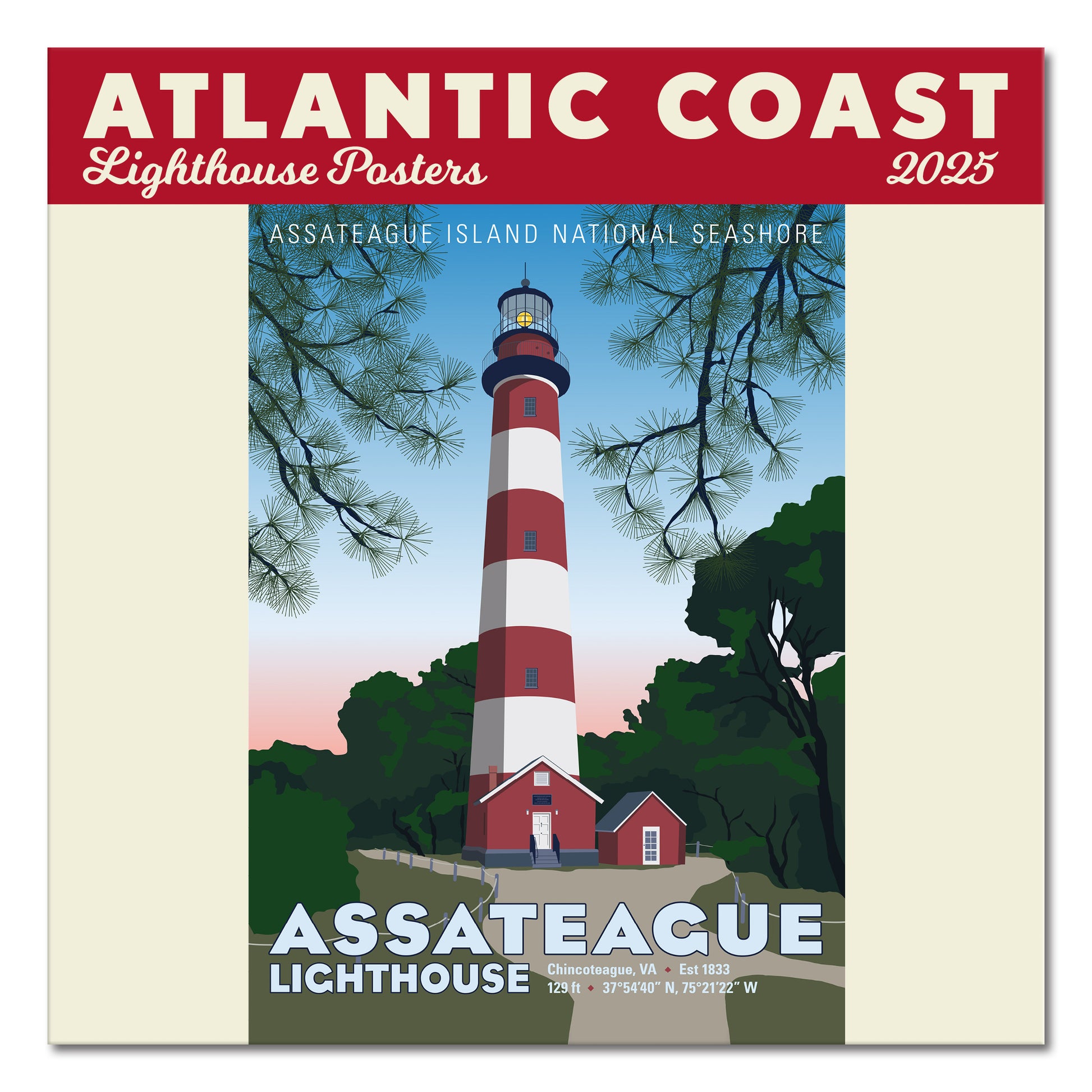 2025 Atlantic Coast Lighthouse Posters Mini Wall Calendar 7″ x 7